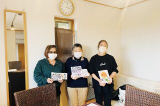 己書は描いていると、どんどん、どんどん楽しくなってくるんです。はなちゃんも足の痛いおばあちゃんにプレゼントしたい!と「いたいのいたいのとんでいけー!」と。アイディアが溢れてきますね。きっとおばあちゃんも泣いて喜ぶのではないでしょうか?「絆」も仲良しのお友達にプレゼント!さらに絆が深まることでしょう!