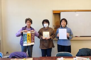 初参加のちずこさん、えみさん、2度目ご参加のようこさん、ゆみこさん、かずこさん、そして3度目絵の具チャレンジりつこさん!みなさんとっても素敵な作品が仕上がりました〜!